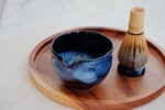 This listing is a PRE-ORDER for a matcha bowl in the Pleiades colourway (glossy black with brushed blue details). Can be purchased as a set with a matching whisk holder.